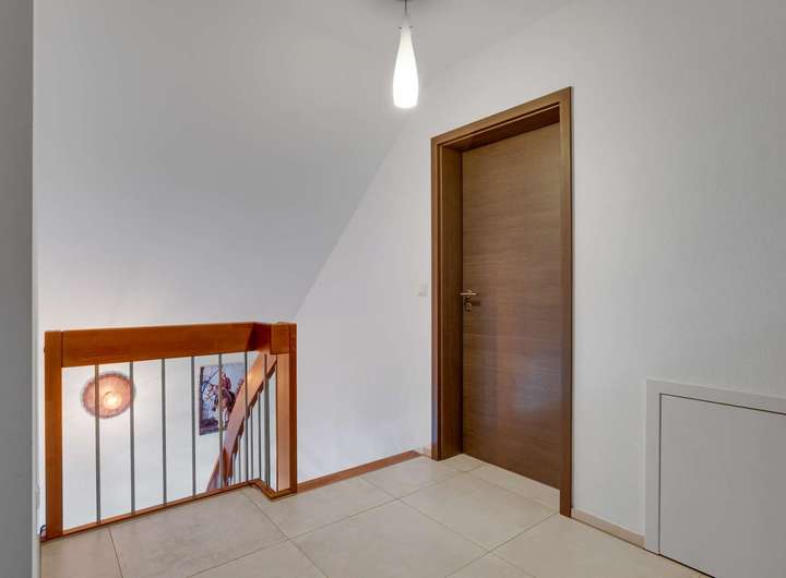 Die Bauweise überzeugt durch durchdachte Materialwahl und hochwertige Ausführung: 24cm starke Ziegel-Außenwände mit 18cm Vollwärmeschutz, Stahlbetondecken sowie anthrazitfarbene Dachpfannen sorgen für Stabilität und modernes Design. Kunststofffenster mit dreifacher Isolierverglasung und Rollläden bieten optimalen Wärme- und Schallschutz. Beheizt wird das Haus über eine effiziente Wärmepumpe mit Fußbodenheizung, ergänzt durch eine 10kWp-Photovoltaikanlage mit 10kWh Speicher – für maximale Unabhängigkeit von steigenden Stromkosten. Glasfaseranschluss sorgt für schnelles Internet. Der Zustand des Hauses ist absolut neuwertig.