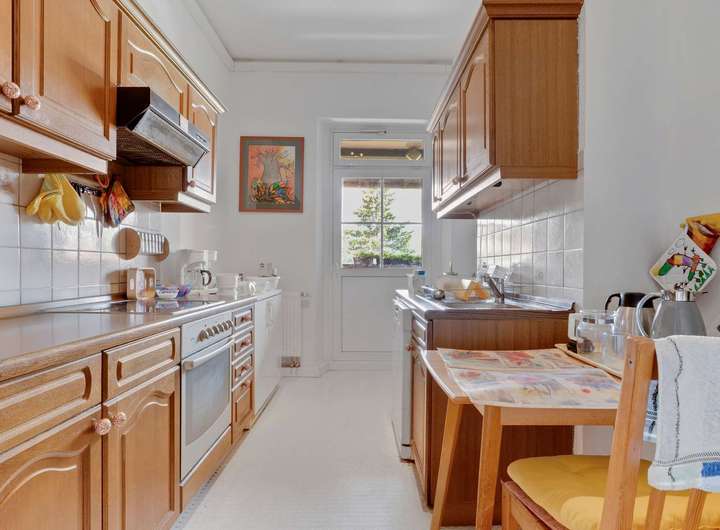 In der direkten Nachbarschaft herrscht eine gewachsene Wohnstruktur mit gepflegten Altbauten, modernen Geschäften und kleineren Dienstleistungsbetrieben. Mehrstöckige Wohnhäuser prägen das Straßenbild, viele Einheiten werden privat vermietet, was das Quartier lebendig und soziale Kontrolle hoch hält. Gewerbliche Nutzungen wie Cafés, Bäcker, Uhren-/Schuhgeschäfte und kleine Büros sind fußläufig erreichbar, aber grundlegend ohne Lärmprobleme. Grünflächen, Baumpflanzungen und ruhige Nebenstraßen sorgen für eine angenehme Atmosphäre. Die fußläufige Nachbarschaft bietet ein harmonisches Verhältnis von urbanem Komfort und wohnlicher Ruhe.