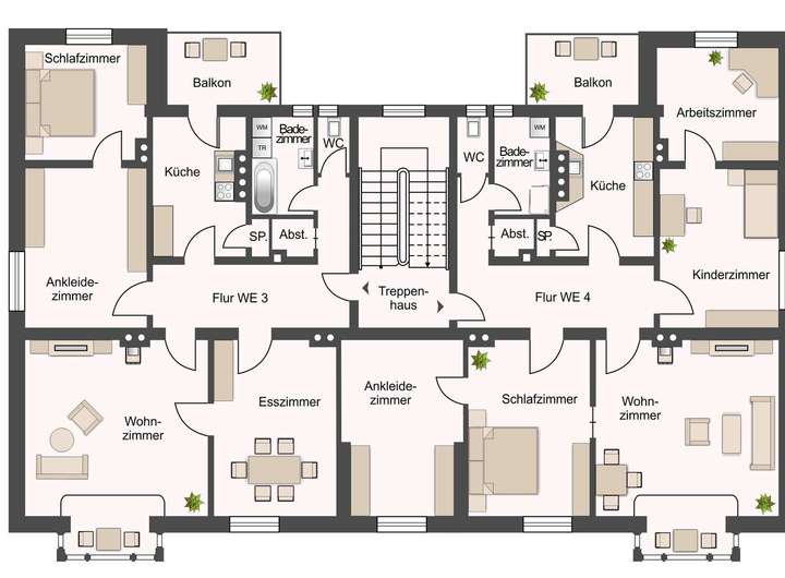 Die acht Wohneinheiten sind wie folgt aufgeteilt: