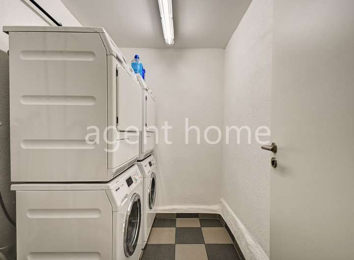 Eine Waschmaschine und ein Trockner befinden sich zur alleinigen Nutzung im Waschraum im Parterre des Hauses.