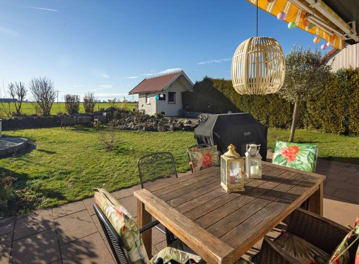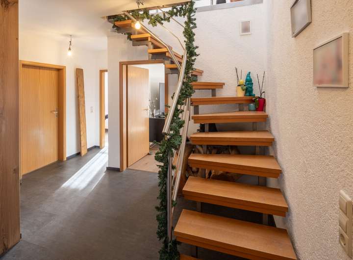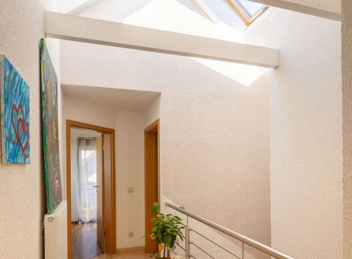 Auch technisch präsentiert sich die Immobilie auf einem sehr guten Stand. Die Fassade wurde 2020 neu verputzt und der Giebel zusätzlich gedämmt. Ein modernes Gasbrennwertgerät aus dem Jahr 2019 gewährleistet eine effiziente Heiztechnik. Die Photovoltaikanlage besteht aus einer Volleinspeiseanlage (vertraglich gesichert bis 2027) sowie einer zusätzlichen Anlage für den Eigenverbrauch mit 5,2 kWp, Hybridwechselrichter und neuem Batteriespeicher – ein deutlicher Pluspunkt für nachhaltiges und kosteneffizientes Wohnen.