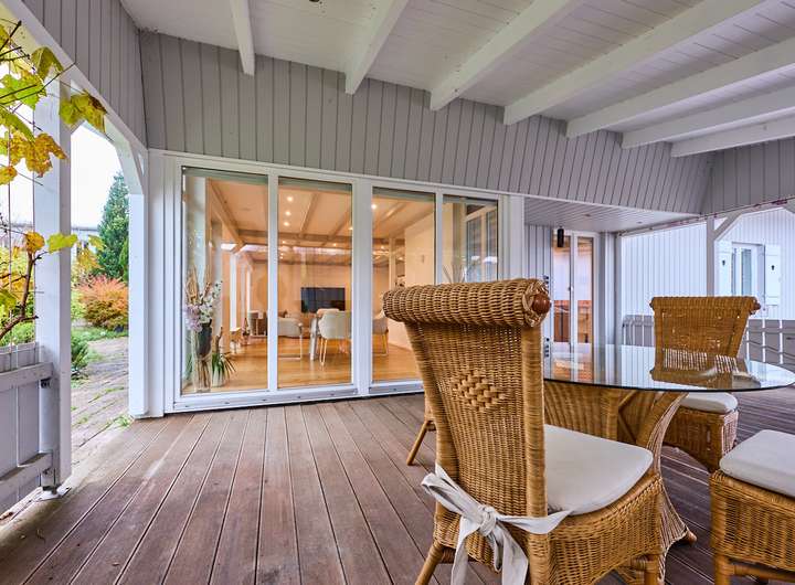 Das weitläufige Grundstück von 1.355 m² ist ein Paradies für Kinder und Haustiere. Eine große Terrasse mit Outdoor-Bar und Grillstation bietet Raum für gesellige Stunden im Freien. Der liebevoll angelegte Garten mit Teich und die Option zur Pool-Installation runden das Angebot ab.