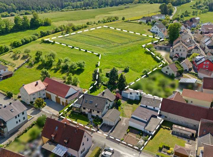 Eingebettet in eine ruhige, naturnahe Umgebung liegt das Anwesen in der beschaulichen Ortschaft Reichmannsdorf, einem Ortsteil Schlüsselfelds – frei von direkten Nachbarn und umgeben von Feldern, Wiesen und altem Baumbestand. Die Nachbarschaft ist geprägt von weitläufigen Grundstücken und landwirtschaftlich genutzten Flächen, wodurch ein hohes Maß an Privatsphäre und Erholung garantiert ist. Die ruhige Alleinlage schafft eine entspannte Atmosphäre, in der Kinder ungestört spielen können und Tierhaltung problemlos möglich ist. Hier hören Sie nur das Zwitschern der Vögel und den Wind in den Bäumen – ein Ort, an dem Naturverbundenheit zum Alltag wird.