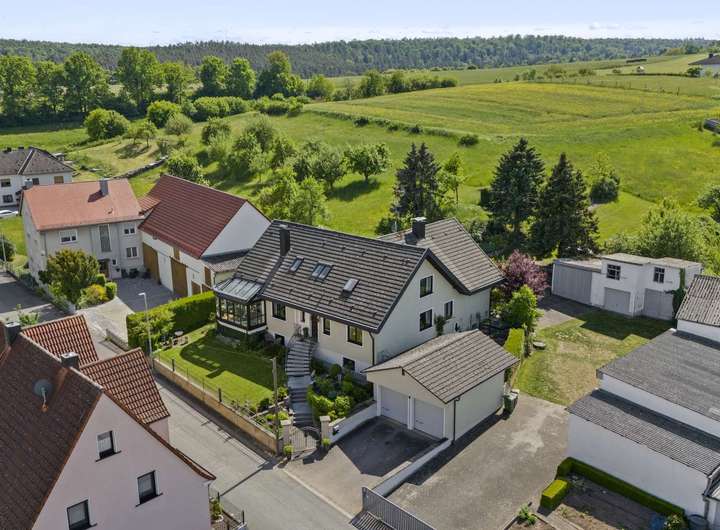 Ein außergewöhnliches Architektenhaus mit großem Grundstück wartet in absoluter Alleinlage auf neue Eigentümer – ideal für alle, die Ruhe, Raum und Natur suchen, ohne auf eine gute Anbindung verzichten zu wollen. Eingebettet zwischen Schlüsselfeld und Burgebrach bietet dieses Refugium mit 9.625m² Grundstücksfläche ein unvergleichliches Maß an Freiheit. Ob zur Kleintierhaltung, für gärtnerische Entfaltung oder einfach als naturnaher Rückzugsort – hier eröffnet sich eine Vielfalt an Nutzungsmöglichkeiten. Die verschiedenen Nebengebäude, darunter eine große Scheune samt PV-Anlage, bieten enorme Flexibilität für Arbeit, Hobby oder Lagerung. Bezugsfertig nach Absprache lässt sich dieser Wohntraum zeitnah realisieren.
