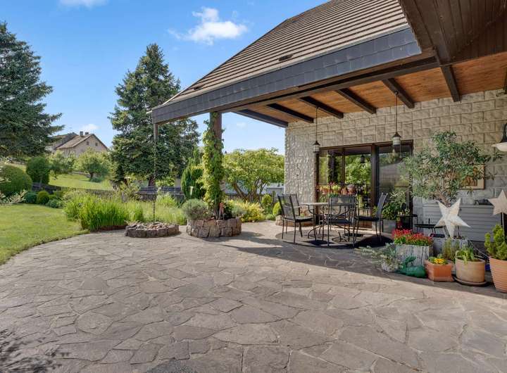 - Überdachte Südwest-Terrasse mit Natursteinbelag