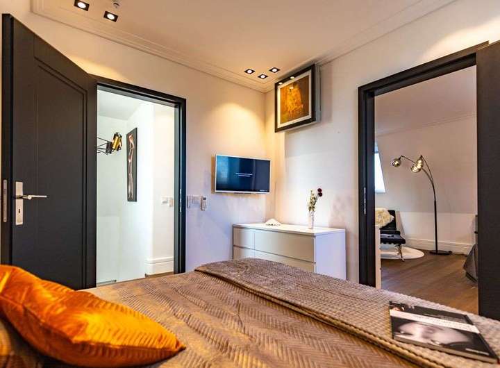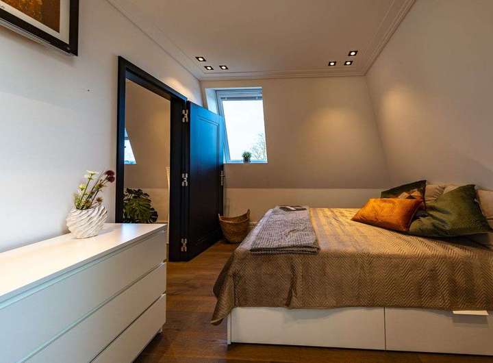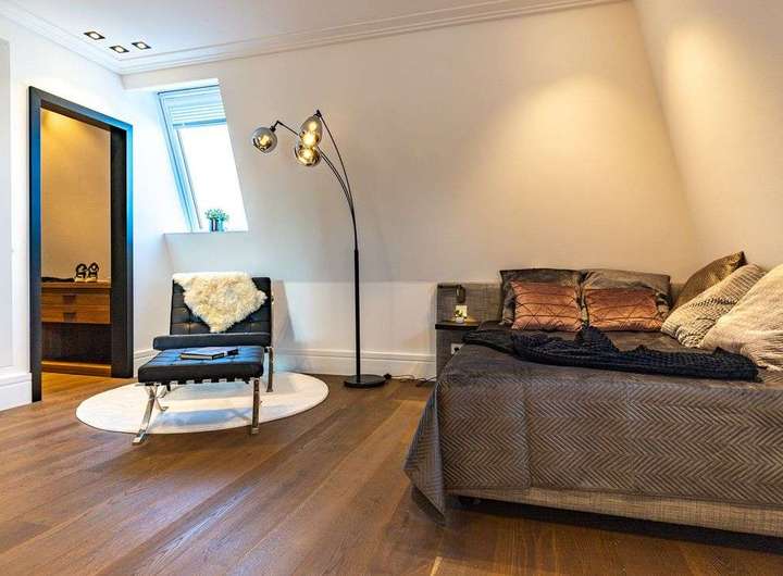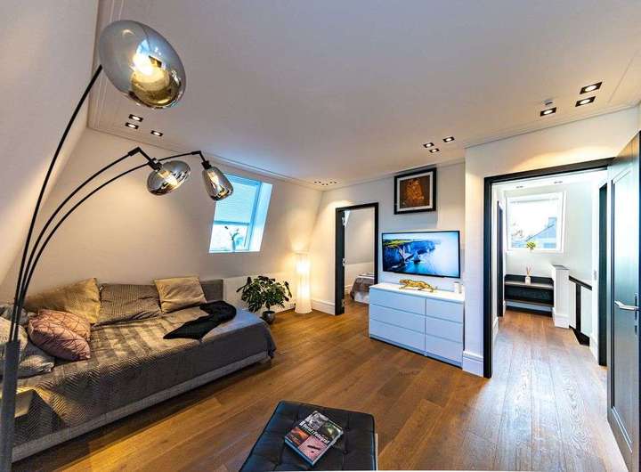Das Dachgeschoss beherbergt zwei weitere stilvolle Schlafzimmer, jeweils mit integrierten Design-Elementen, sowie ein weiteres hochwertig ausgestattetes Badezimmer.