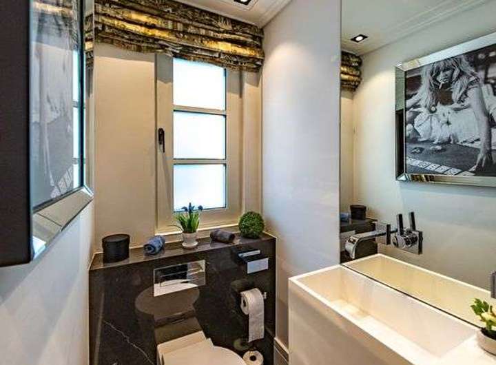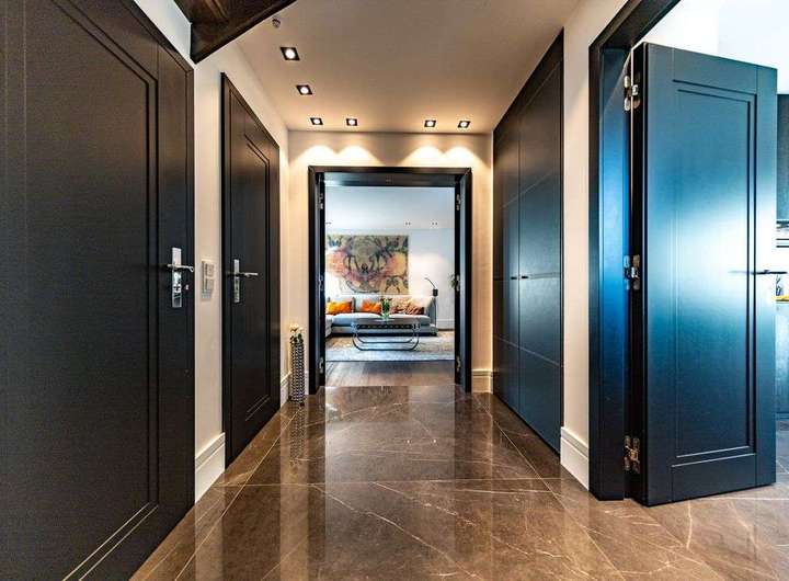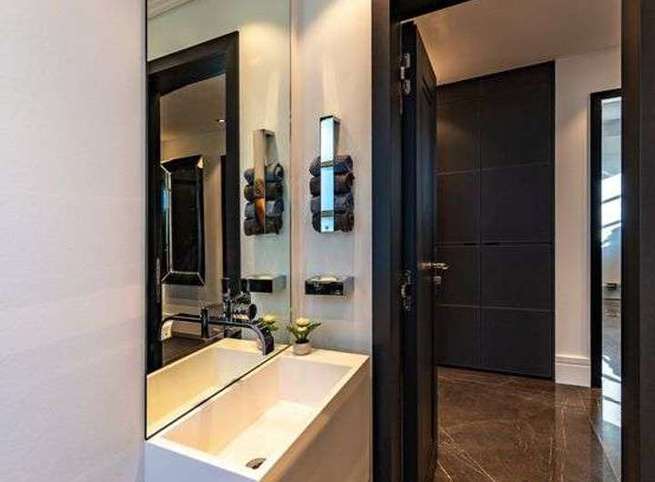 Das gesamte Haus ist mit geräucherten Eichendielen, maßgefertigten Türen, High-End-Technik und luxuriöser Möblierung ausgestattet.