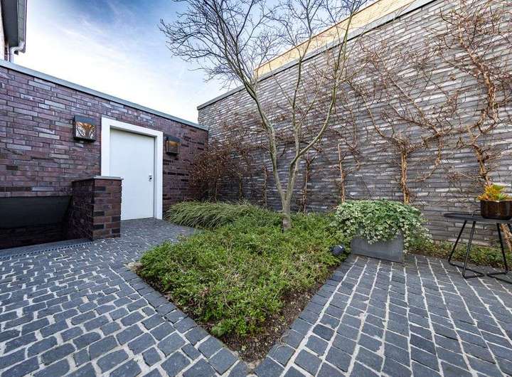 Die Stadtvilla erstreckt sich über drei Etagen mit insgesamt 185 m² Wohnfläche, verteilt auf sechs hochwertig ausgestattete Zimmer, darunter drei Schlafzimmer, zwei Bäder sowie mehrere repräsentative Wohn- und Aufenthaltsbereiche. Das Anwesen befindet sich auf einem ca. 250 m² großen, eingefriedeten Grundstück, das in klarer, minimalistischer Gestaltung einen privaten Rückzugsort bildet.