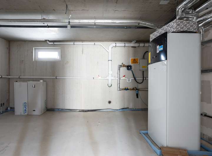 Auch technisch erfüllen die Häuser hohe Standards. Alle Räume sind mit einer Fußbodenheizung ausgestattet, in den Badezimmern stehen zusätzlich Handtuchwärmer zur Verfügung. Die Wärmeversorgung des gesamten Quartiers erfolgt über eine zentrale Wärmepumpe. Gebaut wird nach dem KfW-40-NH-Standard. Jedes Haus erhält eine Photovoltaikanlage mit bis zu 4 kWp Leistung sowie einen Wechselrichter und eine Batterie mit ca. 5 kWh Speicherkapazität.