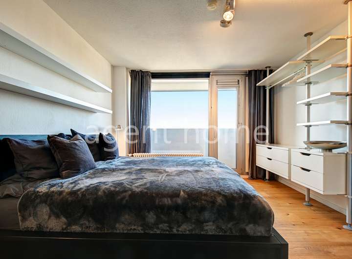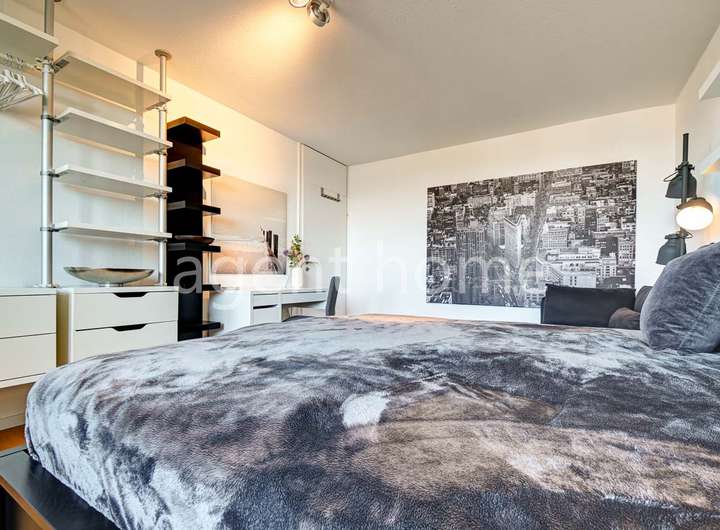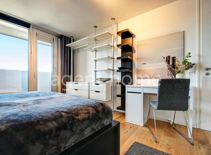 Im Hauptschlafzimmer befinden sich ein Doppelbett (1,80x2m) und ein Kleiderschrank. Auch von hier ist der Balkon begehbar.