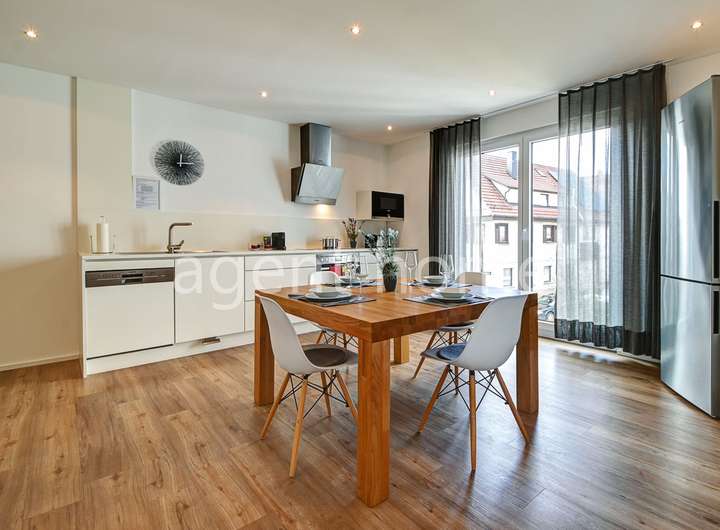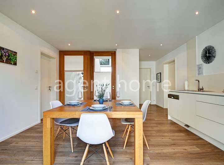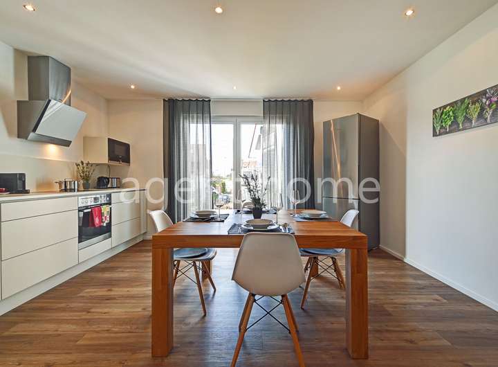 Die Wohnung befindet sich in der 1. Etage eines gepflegten Mehrfamilienhauses von 2016 und wurde 2023 neu möbliert.