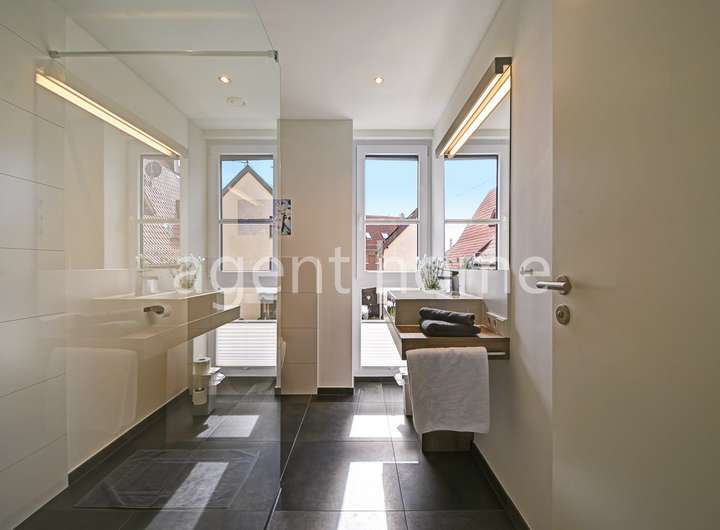 Geschmackvoll möblierte 3,5-Zimmer-Wohnung mit drei Schlafzimmern, drei Bädern und q4-tägigem Reinigungsservice in Reutlingen - ideal für Kollegen.