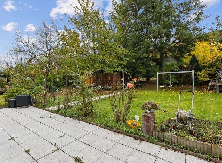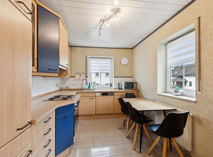 Im Erdgeschoss erwartet Sie ein großzügiger Küchen, Wohn- und Essbereich mit Kamin, der an kühleren Tagen eine besonders behagliche Atmosphäre schafft. Große Fensterflächen sorgen für viel Tageslicht und eröffnen den Blick in den gepflegten Garten inklusive Zugang zum Garten – ein idealer Ort zum Entspannen, Spielen oder für gesellige Stunden mit Familie und Freunden.