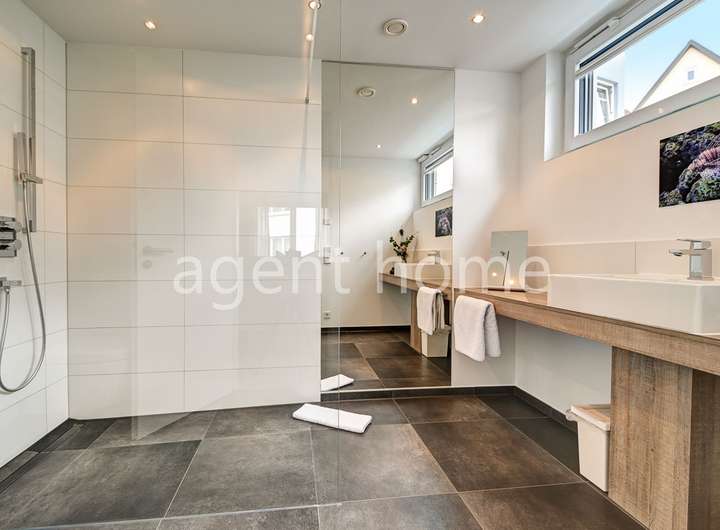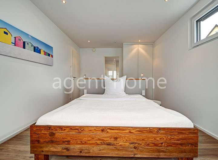 Das erste Schlafzimmer verfügt über ein Doppelbett (1,80x2m), einen Smart-TV, einen Kleiderschrank und einen Arbeitsplatz. Das Tageslichtbad ist en-suite und ist mit einer bodengleichen Dusche ausgestattet.