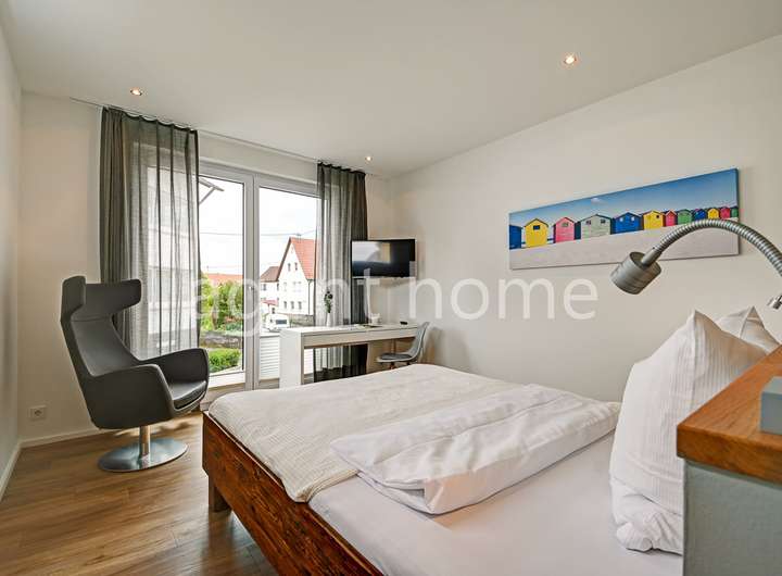 Geschmackvoll möblierte 3,5-Zimmer-Wohnung mit drei Schlafzimmern, drei Bädern, Terrasse und 14-tägigem Reinigungsservice in Reutlingen - ideal für Kollegen.