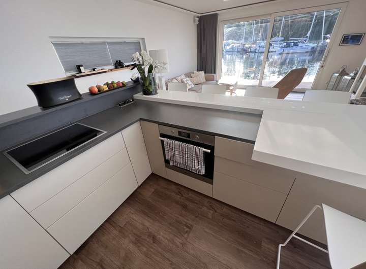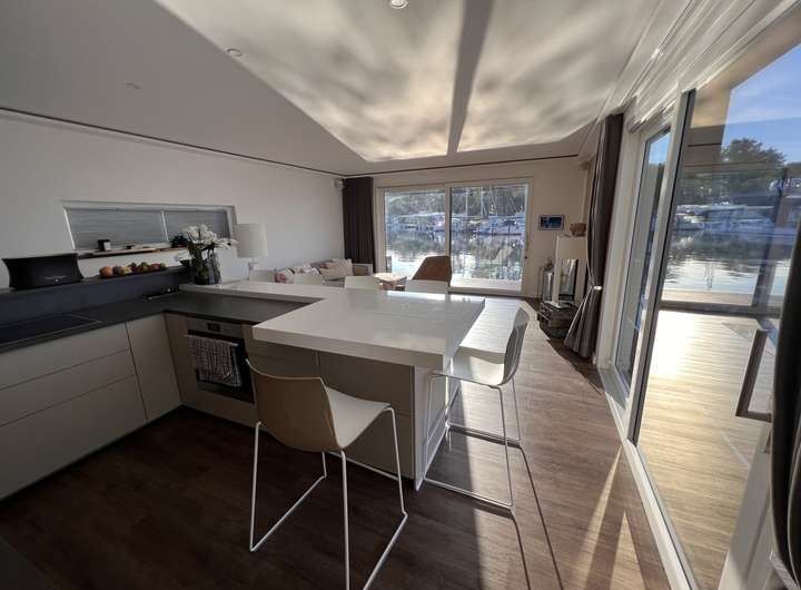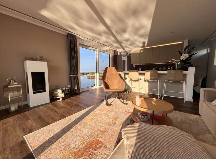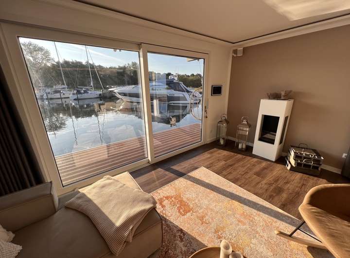 LUXUS Hausboot - 3 Etagen - 100m² Wohnen + 120 m² SONNENTERRASSE - Kamin, Kino, komplett individuell