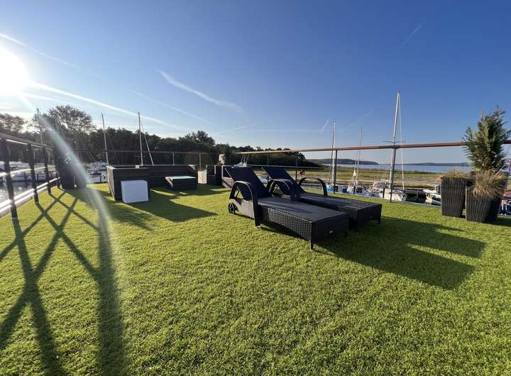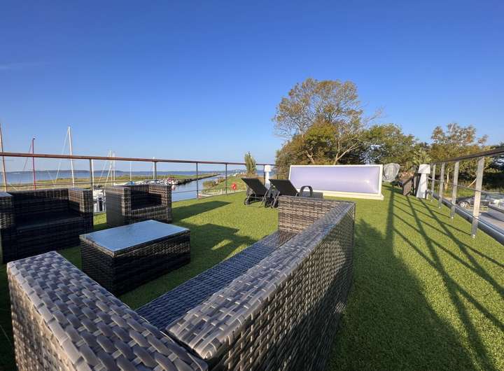 Das Dach bietet eine großzügig angelegte Terassenfläche mit ca. 200 m² und einem atemberaubenden Ausblick auf Ihre stetig wechselnde Umgebung.