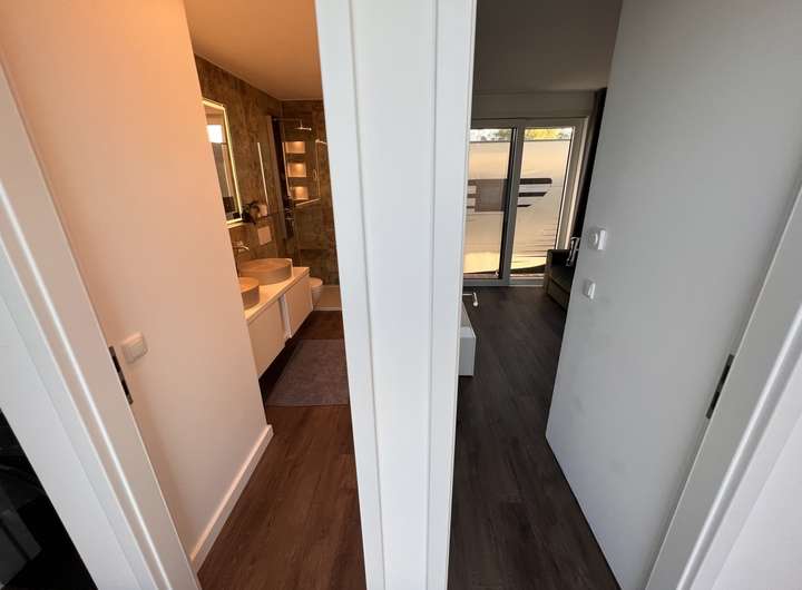 Als Designhaus nach deutschen Standards für Statik und Energieeffizients gefertigt, ermöglicht es dank seiner Sportbootzulaßung nach Europäischen Richtlinien die Mobilität und Freiheit einer neuen Lebensqualität.