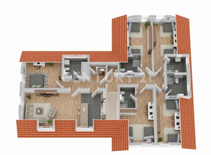 Im vollständig ausgebauten Dachgeschoss befinden sich eine ca. 41 m² große 2 Zimmer Wohnung sowie vier weitere Micro-Apartmens mit Größen von ca. 19,5 m² bis 22 m².