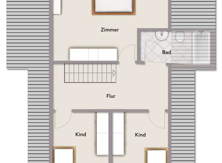 Nachträglich wurde im Obergeschoss ein kleines Bad eingebaut.