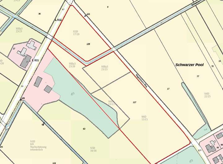 Die Bodengüte beläuft sich zum Großteil auf S5D/ S6D . An dem Graben entlang liegt diese bei SIIIa3. Maximal beträgt sie 23 Bodenpunkte. Sehr gut erreichen lässt sich der Ackerschlag über die umliegende Straße. Aktuell ist die Fläche noch bis zum 30.09.2032 verpachtet.