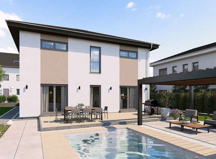 Dieser Architektenentwurf ist ein Planungsvorschlag und dient der Inspiration und Orientierung. Grundrisse, Architektur-Extras, Ausbau- und Effizienzhaus-Stufen werden individuell an Ihre Wünsche und Bedürfnisse angepasst.