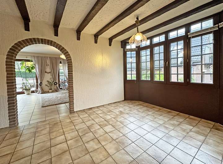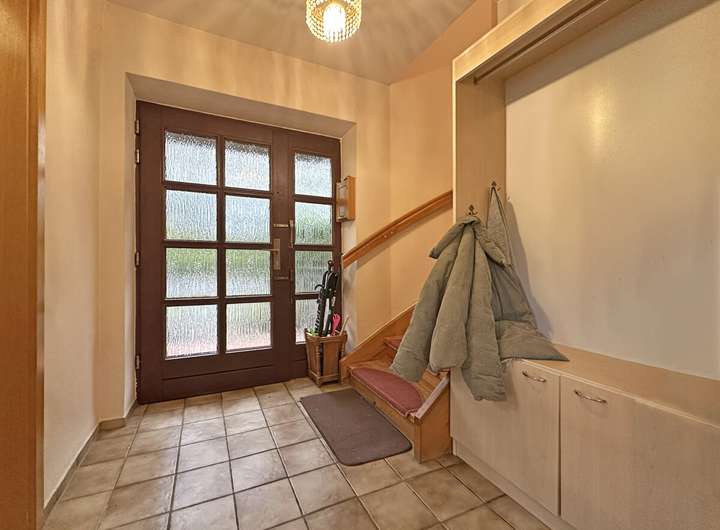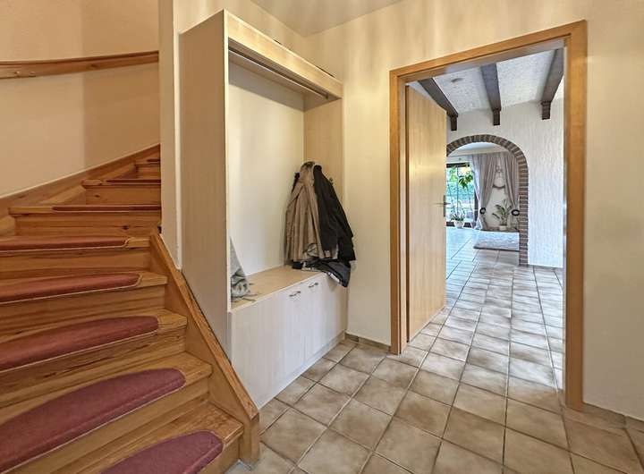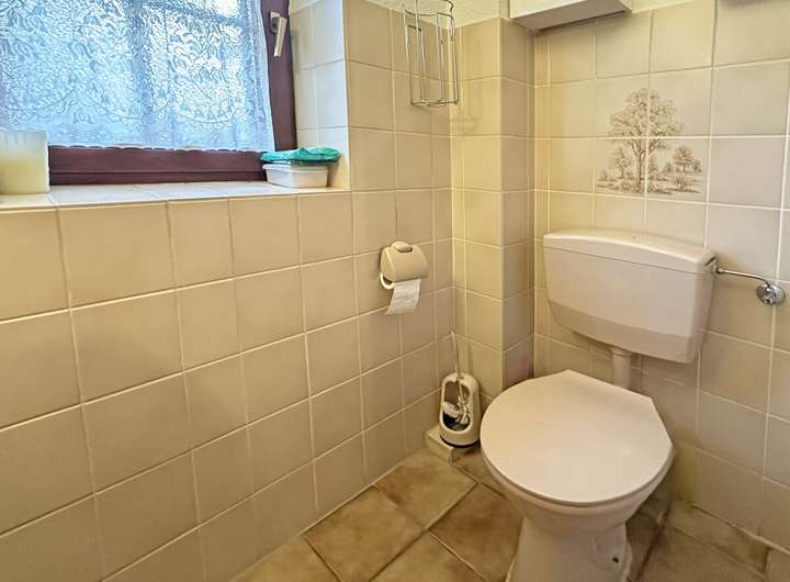 Die Einbauküche im Landhausstil ordnet sich auf drei Seiten an. Der Wintergarten wurde 2024 erneuert, ist jedoch nicht beheizt. Der Vollkeller bietet einen separaten Außenzugang, dessen Tür 2010 erneuert wurde. Der beheizbare Hobbyraum wurde 2025 komplett überarbeitet und bietet vielseitige Nutzungsmöglichkeiten. Die Beheizung erfolgt über eine Gaszentralheizung aus dem Jahr 2015.