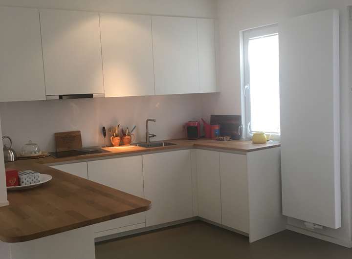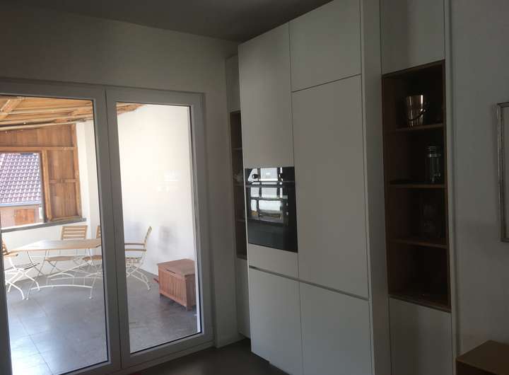 - hochwertige Einbauküche (weiß Hochglanz)