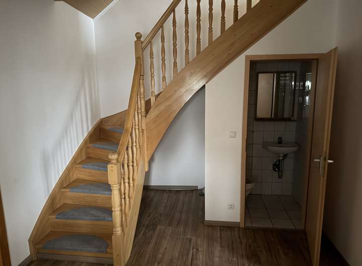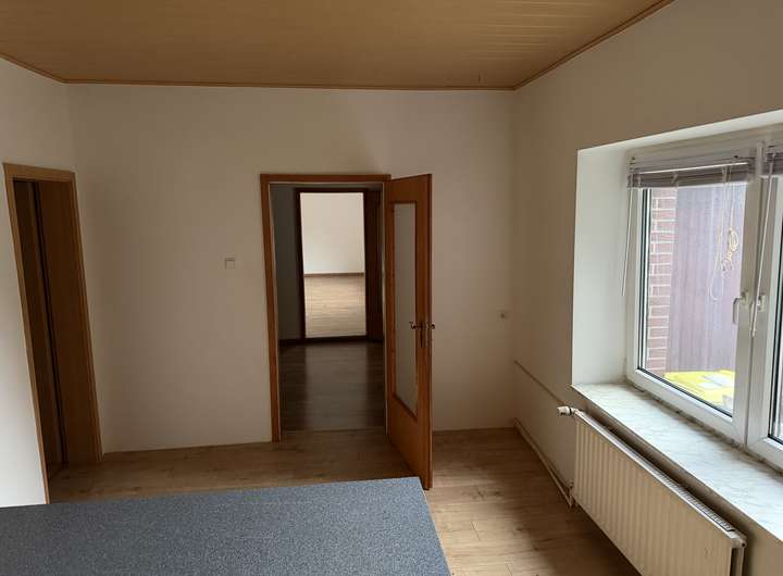 Gepflegte 3-Zimmer-Maisonette über EG/OG (ca. 95 m²) in Stemwede-Haldem. Ruhige Lage; Einkauf ~400 m, Kita/Schule ~2 km. Großer, eingefriedeter Privatgarten (kaum einsehbar). Gepflasterter Hof direkt am Haus mit bis zu 4 PKW-Stellplätzen.
