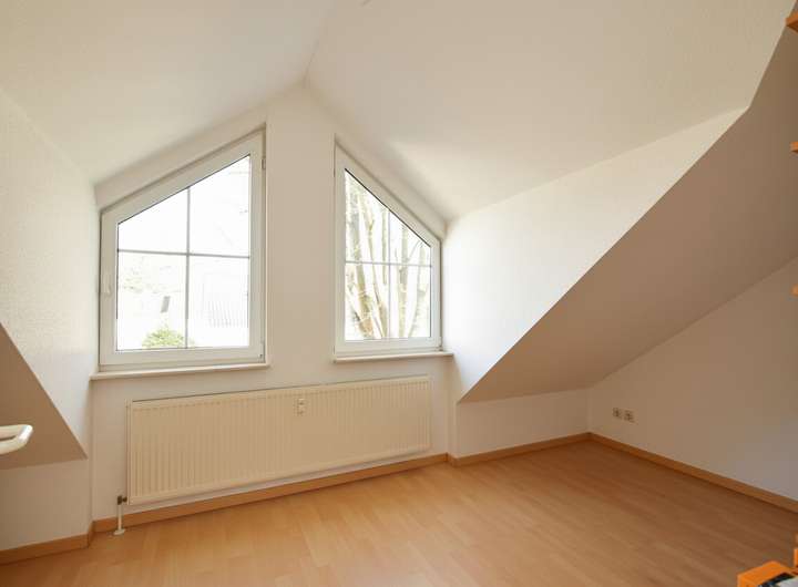Im 1. Obergeschoss finden Sie ein Schlafzimmer mit Balkon, ein weiteres Zimmer sowie ein großes Badezimmer mit Dusche und Badewanne. Im 2. Obergeschoss liegen zwei weitere Zimmer sowie ein weiteres Badezimmer, was kompakte Privatsphäre und zusätzlichen Raum schafft.