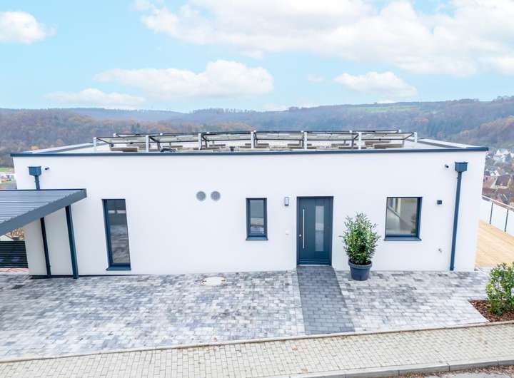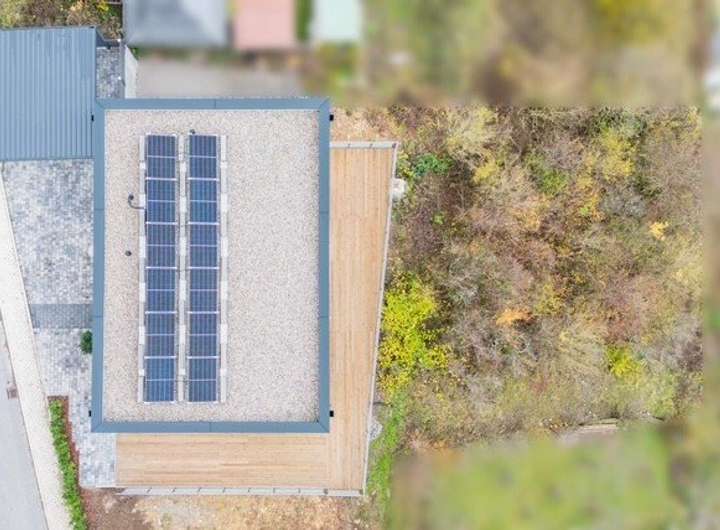 Dieser Bungalow ist einzigartig und wurde sicherlich so noch nicht gebaut. PV mit 5 KWP montiert sowie eine Vorbereitung für einen Batteriespeicher ist vorhanden.