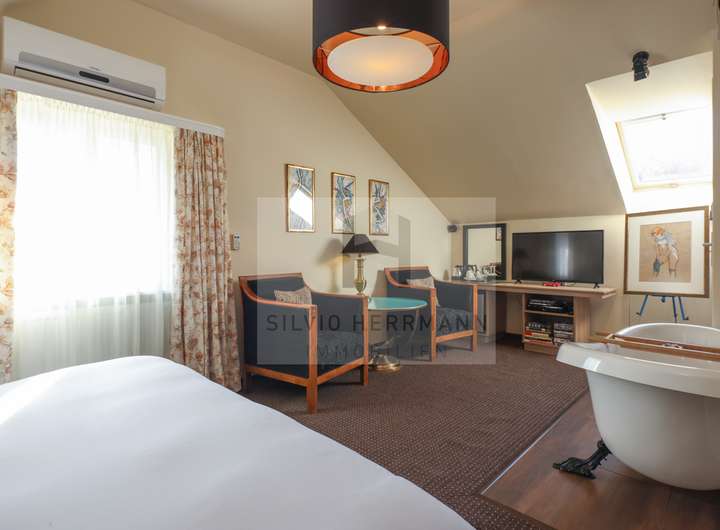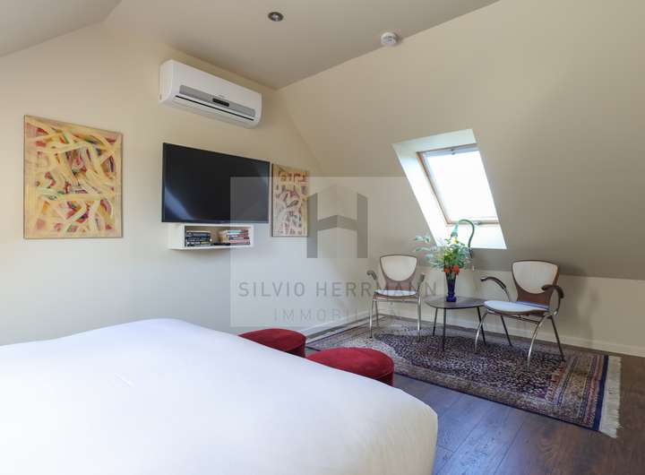 Im Obergeschoss führen zentrale Flure zu vier weiteren individuell gestalteten Suiten.