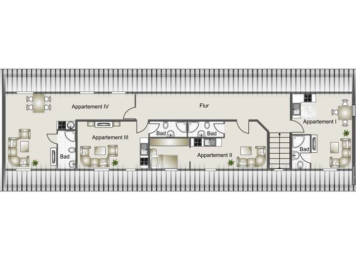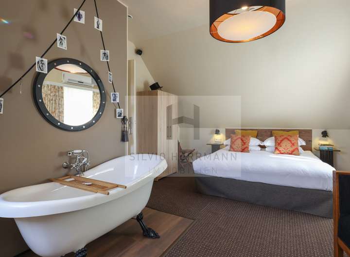 Das Besondere: Sechs eigenständige Suiten, jeweils mit eigenem Bad, teils mit Küchenzeile.