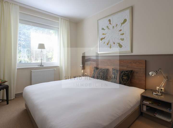 Im Erdgeschoss befinden sich zwei Schlafzimmer mit Bädern, Ankleide, Wohnbereich und Küche.