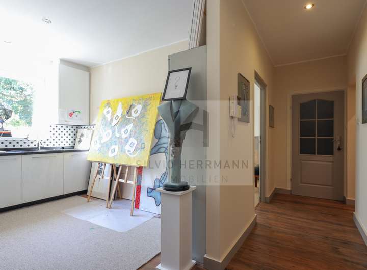 Ein besonderes Highlight: das ca. 50 m² große Atelier, das Raum für private Feiern, Ausstellungen oder kreative Projekte für bis zu 14 Personen bietet. Die Möglichkeiten sind vielfältig.