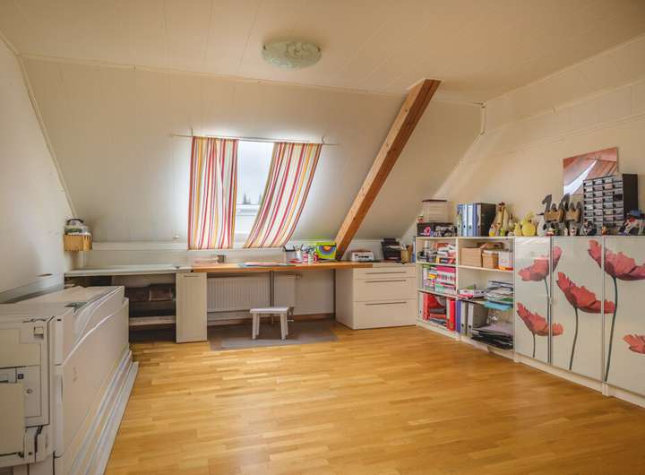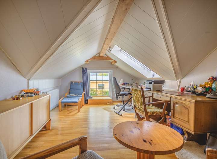 Der Ausbau des Obergeschosses ist zum Teil noch nicht fertiggestellt, es fehlen Türzargen, Türen sowie teilweise Deckenverkleidungen. Dies bietet Ihnen die Möglichkeit, Ihre eigenen Ideen und Wünsche direkt in die Ausführung einzubringen.