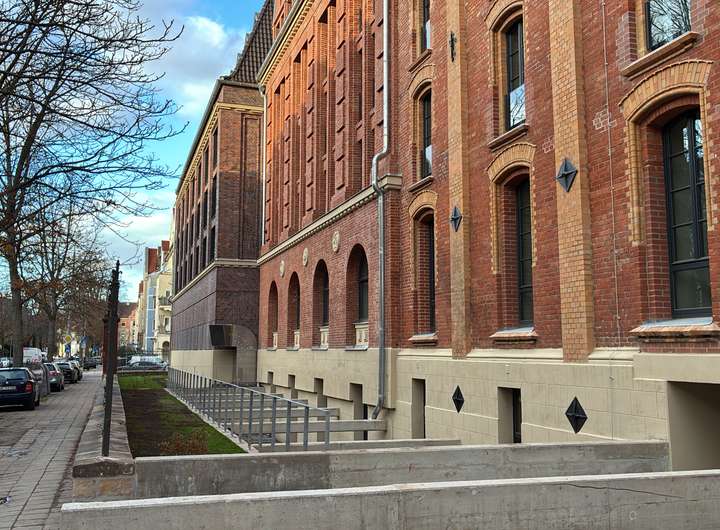 Ein architektonisches Highlight: Die beiden markanten Querriegel verbinden den Charme der Gründerzeit mit dem expressiven Stil des Backsteinexpressionismus – authentisch, einzigartig, urban.