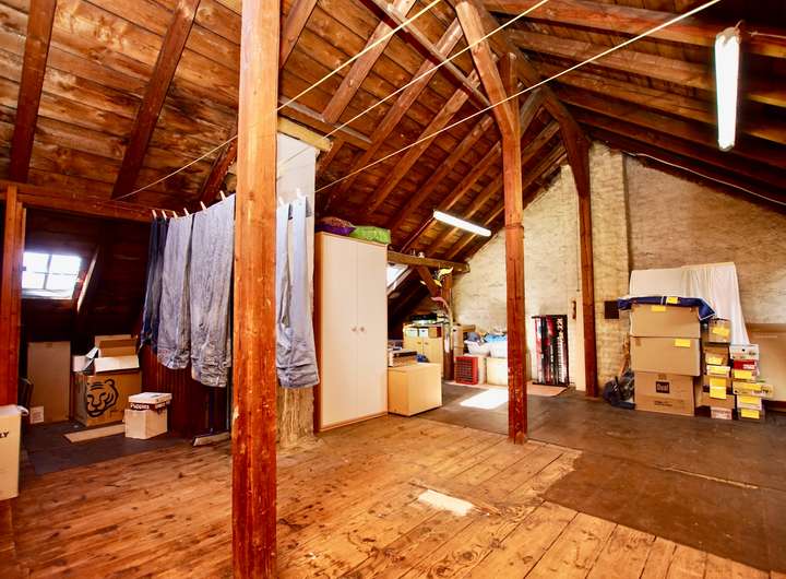 Das Haus ist voll unterkellert. Der Dachboden bietet Ausbaupotenzial und eröffnet zusätzliche Möglichkeiten – etwa für eine weitere Wohneinheit, ein Studio oder Bürofläche, je nach Bedarf und Genehmigung.