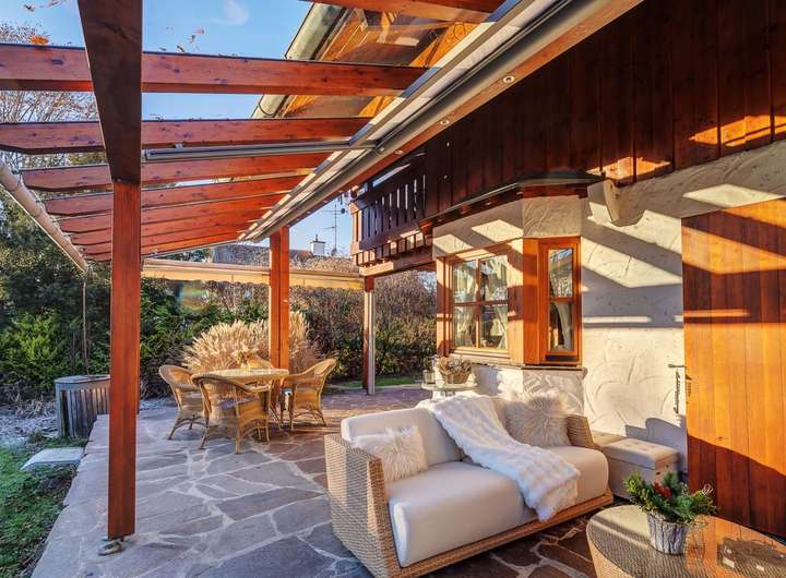 Eine Garage sowie ein zusätzliches überdachtes Carport stehen für Fahrzeuge zur Verfügung und ergänzen das stimmige Gesamtbild dieser Immobilie.