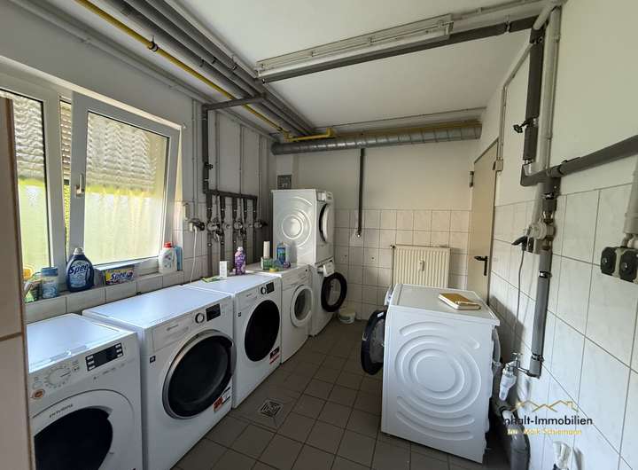 Praktische Annehmlichkeiten wie ein Waschmaschinenraum und ein separates Kellerabteil im Erdgeschoss stehen Ihnen zur Verfügung. Zusätzlich ist ein Stellplatz neben dem Haus gegen eine monatliche Gebühr von 25,00 € verfügbar. Für Ihre Freizeitgestaltung bietet der Garten auch einen Wäscheplatz sowie einen Fahrradunterstand.