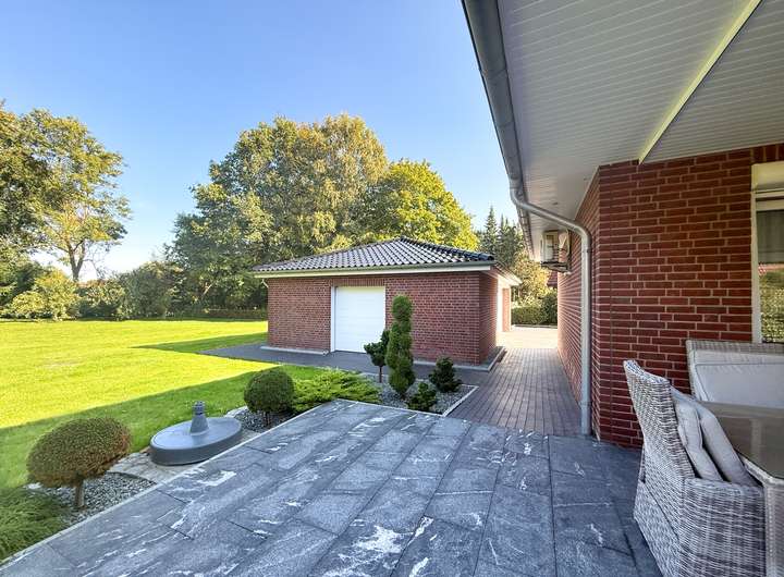 Dieses moderne und sehr gepflegte Einfamilienhaus aus dem Jahr 2015 bietet auf einer Wohnfläche von ca. 241 m² und einem Grundstück von ca. 2.059 m² ein hochwertiges Wohnambiente in ruhiger Nachbarschaft. Das Haus umfasst fünf Zimmer, ein Gäste-WC und drei Bäder – eines davon im Keller – sowie rund 179 m² zusätzliche Nutzfläche. Im gesamten Haus wurde großer Wert auf Qualität gelegt: hochwertige Feinsteinzeugfußböden in Marmoroptik, Fußbodenheizung in allen Räumen, 3-fach verglaste Fenster mit elektrischen Rollläden sowie eine Kerndämmung sorgen für Komfort und Energieeffizienz. Die Raumhöhe von 2,70 bis 2,80 m schafft ein großzügiges Wohngefühl. Ein Kamin aus echtem italienischen Marmor in Jugendstiloptik, passive Deckenbeleuchtung sowie eine hochwertige Alesto-Einbauküche ergänzen die moderne Ausstattung. Der voll unterkellerte Bereich ist dank „weißer Wanne“ optimal gegen Feuchtigkeit geschützt und bietet besondere Highlights: Sauna, Dusche, Fitnessbereich, Whirlpool sowie ein weiteres Badezimmer. Zusätzlich verfügt das Haus über Glasfaseranschluss, Alarmanlage, Klimaanlage und eine Solaranlage. Ein besonderes Highlight ist der große Wintergarten mit elektrischen Rollläden und Markise, der einen harmonischen Übergang in den weitläufigen und liebevoll angelegten Garten bildet. Hier finden Familien, Gartenliebhaber und Ruhesuchende gleichermaßen Platz zur Entspannung. Zur Immobilie gehören außerdem eine Doppelgarage mit Abstellraum sowie weitere Freiflächen zum Parken. Dieses Haus verbindet moderne Ausstattung, großzügige Raumaufteilung und ein beeindruckendes Grundstück – ideal für alle, die ein hochwertiges und ruhiges Zuhause suchen.