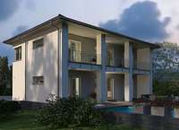 Eine Architektenplanung und Baugenehmigung eines zweigeschossigen Einfamilienhauses liegen vor und
