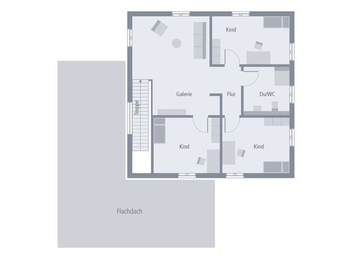 Neben der großen Galerie, die beispielsweise als Bibliothek oder als gemütlicher Wohlfühlort genutzt werden kann, befinden sich hier drei weitere Räume - für Kinder, als Büro oder für Gäste. Musterhaus Eutin - so geht Wohnen mit dem gewissen Extra.