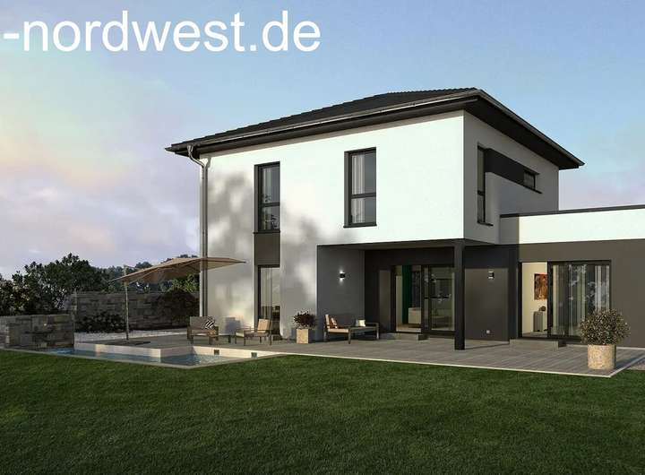 Eine Architektenplanung und Baugenehmigung eines zweigeschossigen Einfamilienhauses liegen vor und