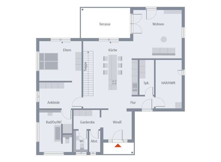 Dieser Architektenentwurf ist ein Planungsvorschlag und dient der Inspiration und Orientierung. Grundrisse, Architektur-Extras, Ausbau- und Effizienzhaus-Stufen werden individuell an Ihre Wünsche und Bedürfnisse angepasst.