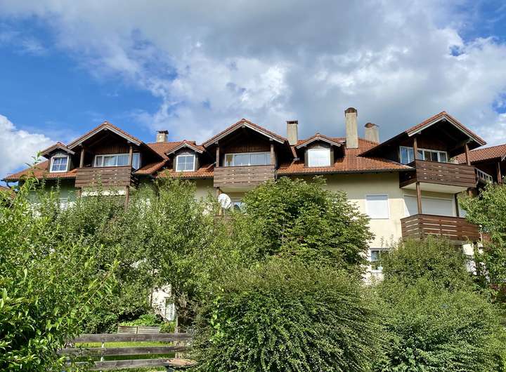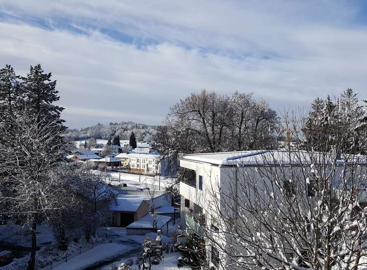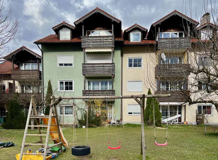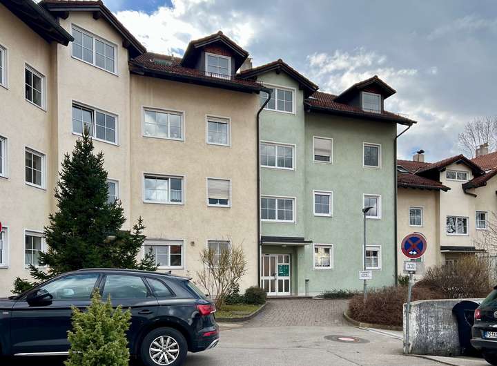 Die Wohnung befindet sich in einer zentrumsnahen kleinen Wohnanlage etwas erhöht am Hang in Traunstein Ortsteil Haslach/Wartberghöhe. Man ist in wenigen Minuten am Bahnhof mit Zuganbindung München-Salzburg und anderen Nebenverbindungen Richtung Traunreut oder Ruhpolding.