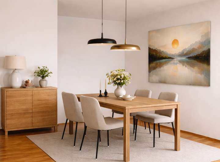 Highlight ist das großzügig geschnittenen Wohn-/Esszimmer mit Echtholz-Schiffsboden-Parkett. In den restlichen Zimmern ein hochwertiger Design-Parkettboden. Küche: Laminatboden/Holzoptik. Der Flur ist gefliest.
