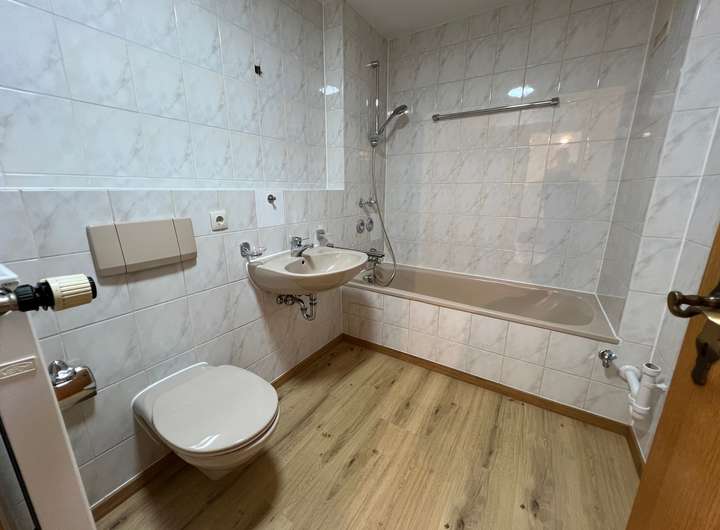Ausstattung: Einbauküche mit Geräten, Bad mit Badewanne, separates Gäste-WC und überdachte Loggia mit Blick Richtung Westen, sowie ein geräumiges Kellerabteil.