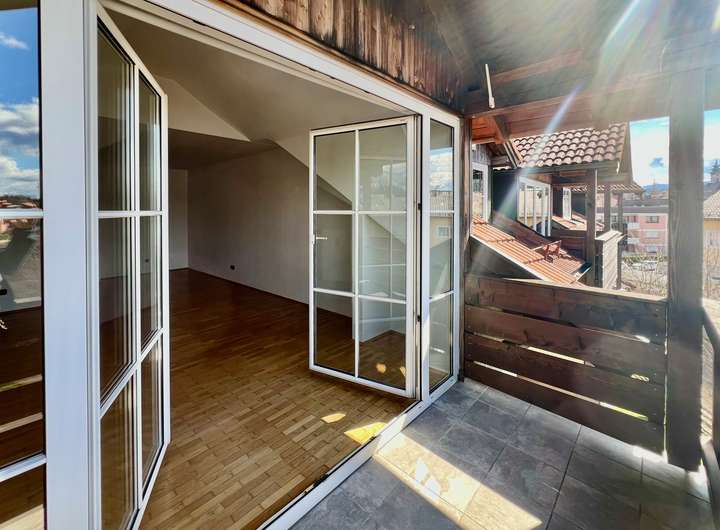 Die helle, sehr gepflegte und charmante 3-Zimmer Dachgeschoss-Wohnung (3. OG) mit sonniger Loggia befindet sich in Traunstein, Ortsteil Wartberghöhe. Sie besticht durch den außergewöhnlich schönen, individuellen Schnitt und den modernen Charakter. Die hohen Dachschrägen und tiefen Gauben, die schöne Sprossenfenster (2-fach verglast aus Kunststoff) und insbesondere die große, bodentiefe Fensterfront im Wohnzimmer vermitteln ein Gefühl der "Freiheit".