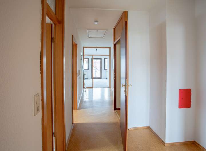 Die Hauptwohnung im Erdgeschoss umfasst ca. 141 m² und ist ideal für Familien geeignet. Sie verfügt über ein Tageslichtbad, ein separates Gäste-WC, eine funktional geschnittene Küche sowie einen offenen Essbereich, der harmonisch in das großzügige Wohnzimmer übergeht. Von hier aus gelangen Sie direkt auf die Terrasse, die einen unmittelbaren Zugang zum Garten bietet. Drei Schlafzimmer runden das Raumangebot dieser Etage ab.